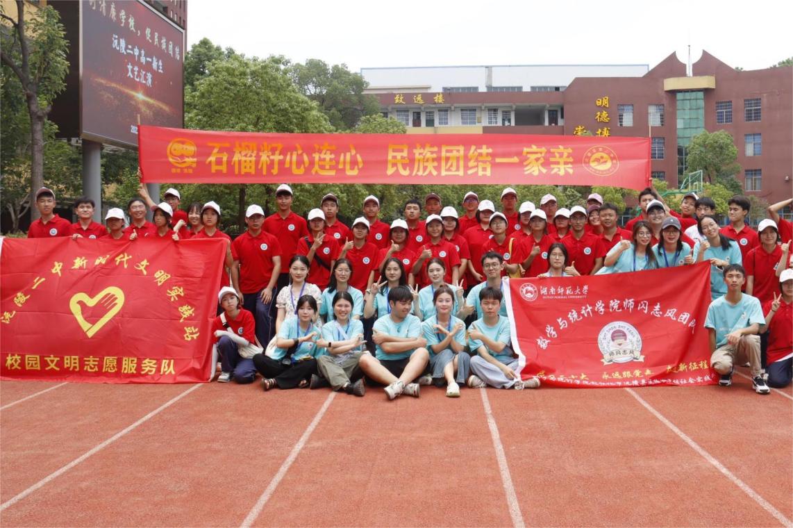 7月31日上午,我校数学与统计学院“师闪志风”暑期社会实践团于沅陵二中组织高一新生开展文艺汇演活动,校长黄颜兴、纪委书记兼政教主任王丽莉、综治办副主任唐咸龙等领导及高一全体教师出席此次活动。