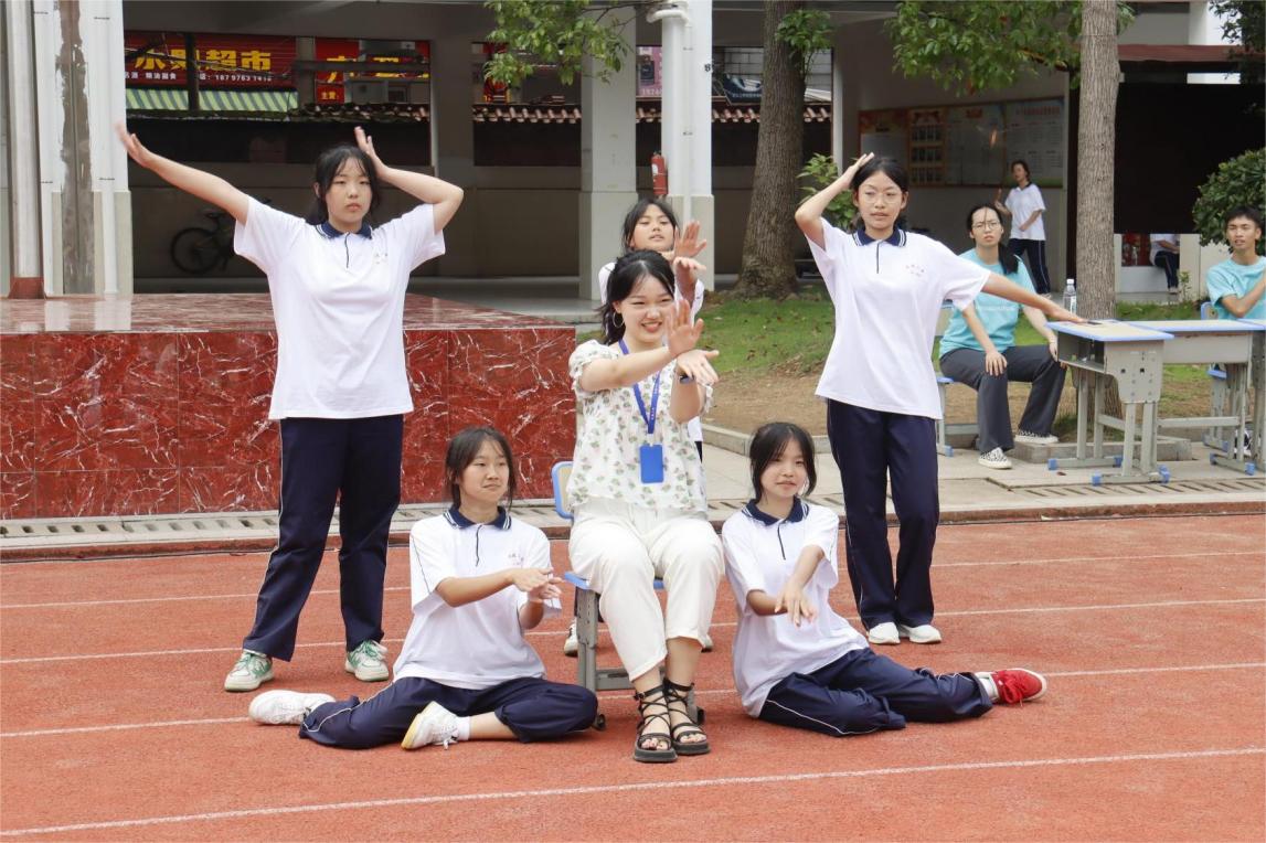 “师闪志风”实践团队员刘梦如带领四位沅陵二中学生表演的舞蹈串烧
