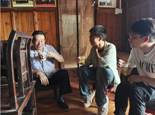 图为实践团成员拜访蓝溪口村老党员唐宏杰