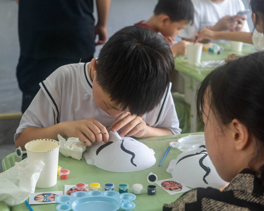 小朋友正在认真绘制面具脸谱 于浩然摄
