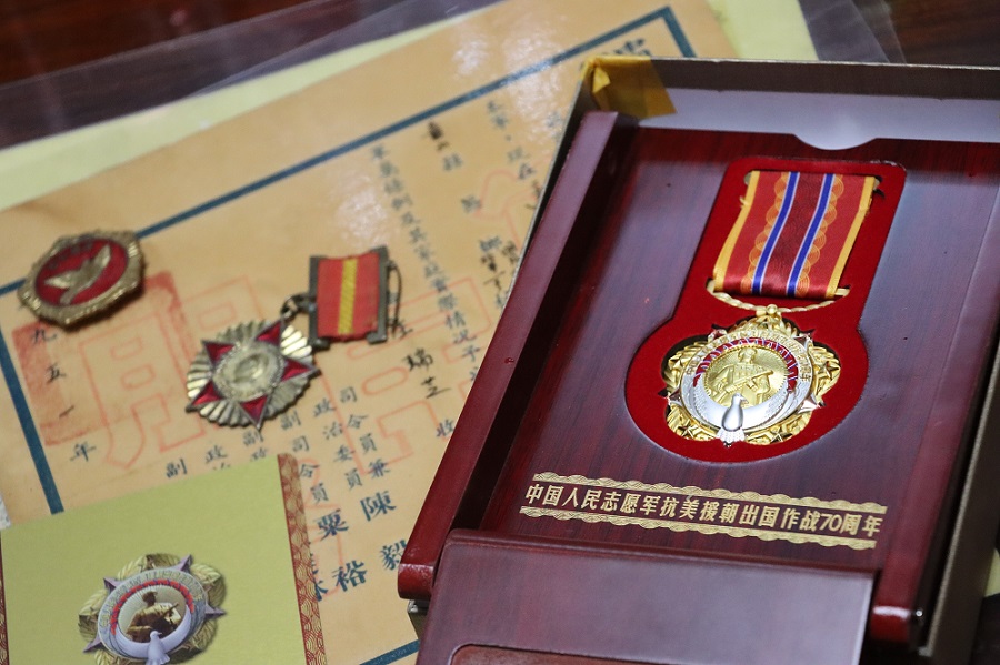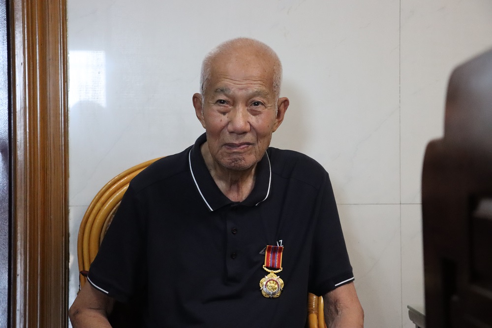 “我直接是睡在打仗的阵地上的,有时候早上起来就会发现自己的眼睛一点都看不清楚了。”此时,老战士骄傲地指了指褶皱肿痛的双腿,这是他引以为豪的护卫祖国的功勋奖章。声情并茂的讲述,一幕幕战时场景从回忆里不断涌现,实践团成员也被深深打动,不禁红了眼眶。
