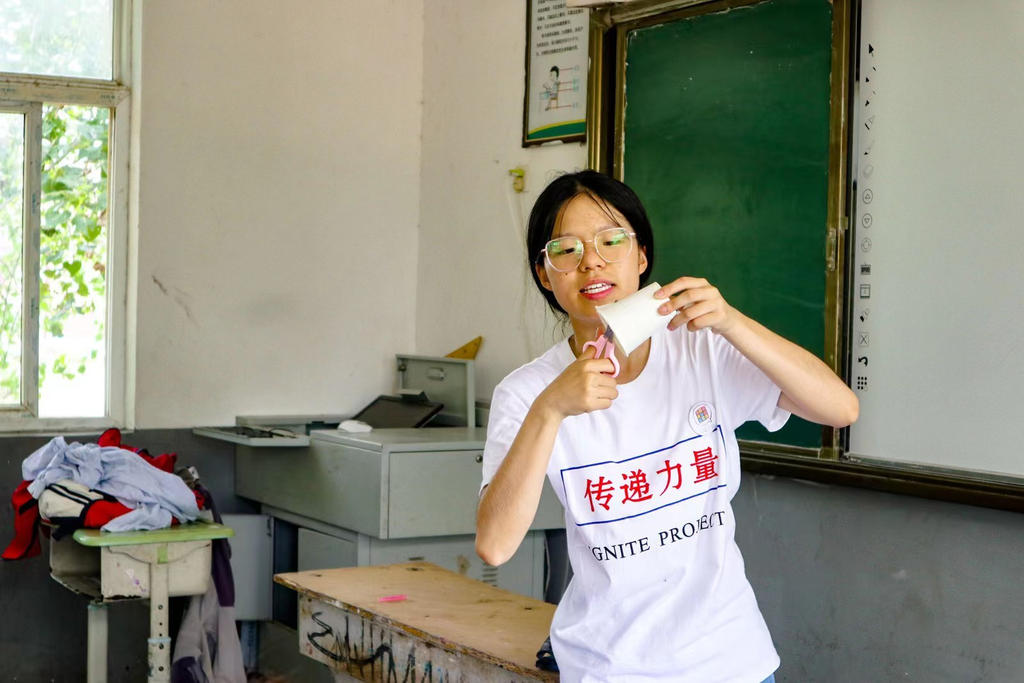 志愿者汪雨娴正在演示如何制作“魔法纸杯” 张昭勖摄