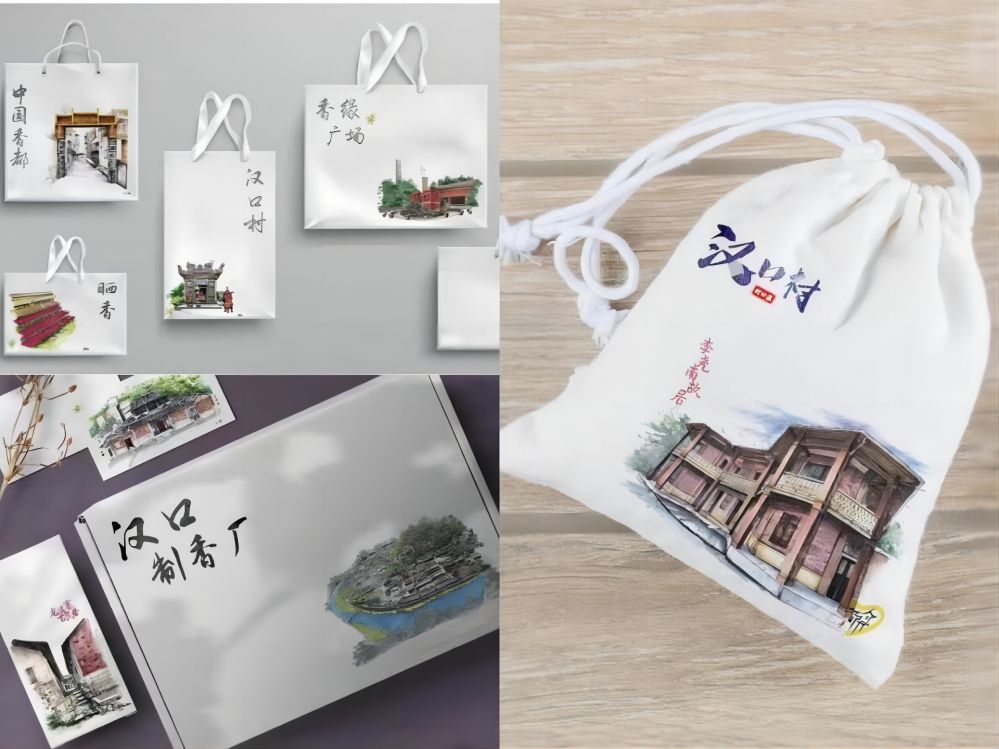 工作坊由手绘文创、视频拍摄和装置设计3个小组组成,通过构建不同模块对汉口香文化进行视频记录、手绘创作、香产品包装升级。团队首先通过手绘表现和手绘地图制作推广香文化旅游线路,并对当地制香企业进行走访交流,以宣传折页的形式对其进行梳理整合,来寻找香文化产业传统与创新之间的结合。针对汉口香文化进行文创设计,形成多款香产品包装。
