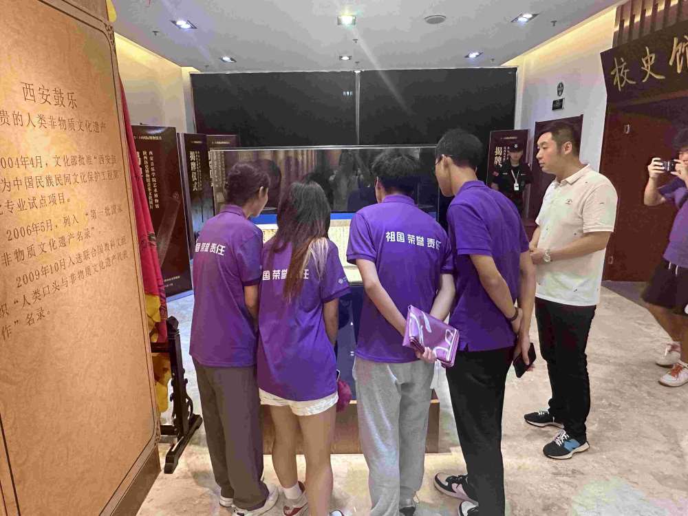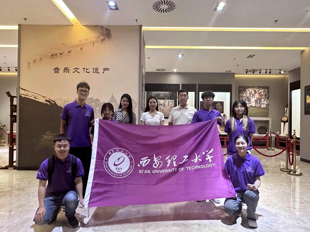 今年暑期,西安理工大学电气工程学院“拾遗焕新,巧研古音”社会实践队前往西安音乐学院博物馆进行参观。博物馆内包含西安鼓乐专题展区及陕西古代音乐文物展区。跟随讲解员的生动解说,队员们深刻感受到中国音乐文化的丰富和繁荣,这一时期西域诸国的音乐、器乐纷纷传入中原,通过三彩骆驼载乐俑等考古文物,实践队员们见识到了早期长颈琉特类乐器、阮咸类琵琶乐器、编钟、编磬、筚篥、排箫等乐器,通过壁画、陶俑等了解了隋唐时期的乐舞文化。