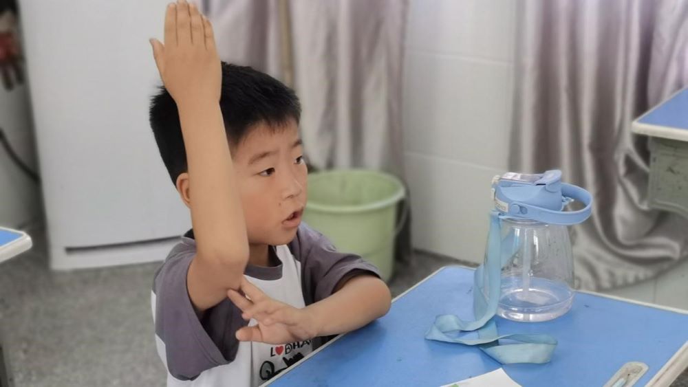 图为孩子们积极举手回答问题。