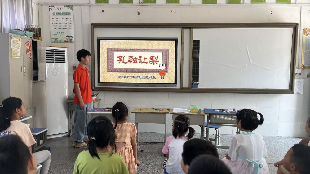图为蒲公英支教社会实践团队开展“谦让”心理教育活动。