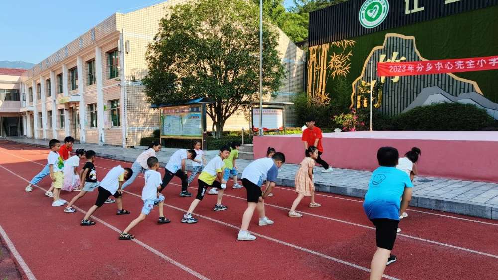 图为蒲公英支教社会实践团队成员带领孩子们热身。
