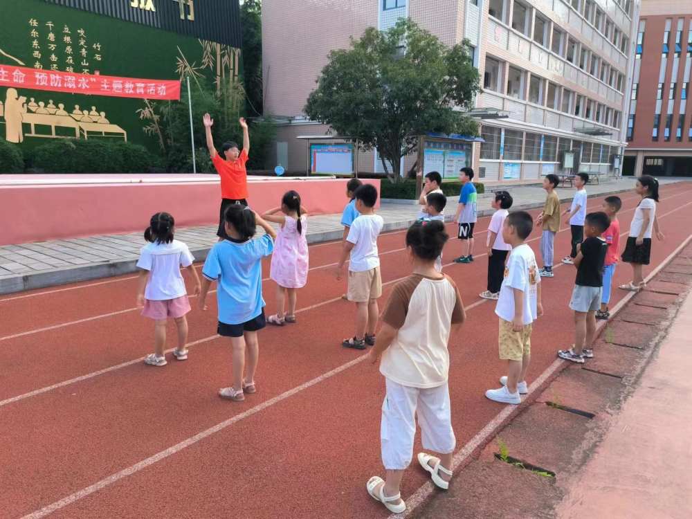 图为蒲公英支教社会实践团队成员带领孩子们热身。