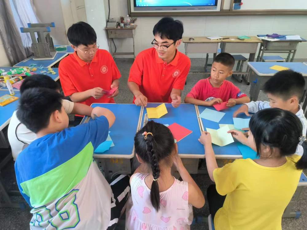 图为蒲公英支教社会实践团队成员教孩子们折纸。