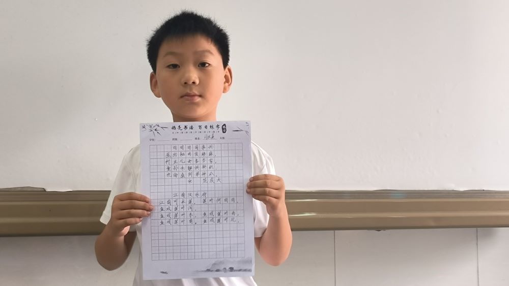 图为孩子书法课作品。