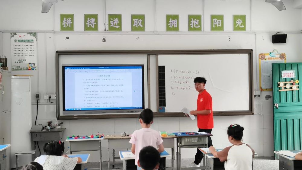 图为蒲公英支教社会实践团队成员给孩子们上数学课。