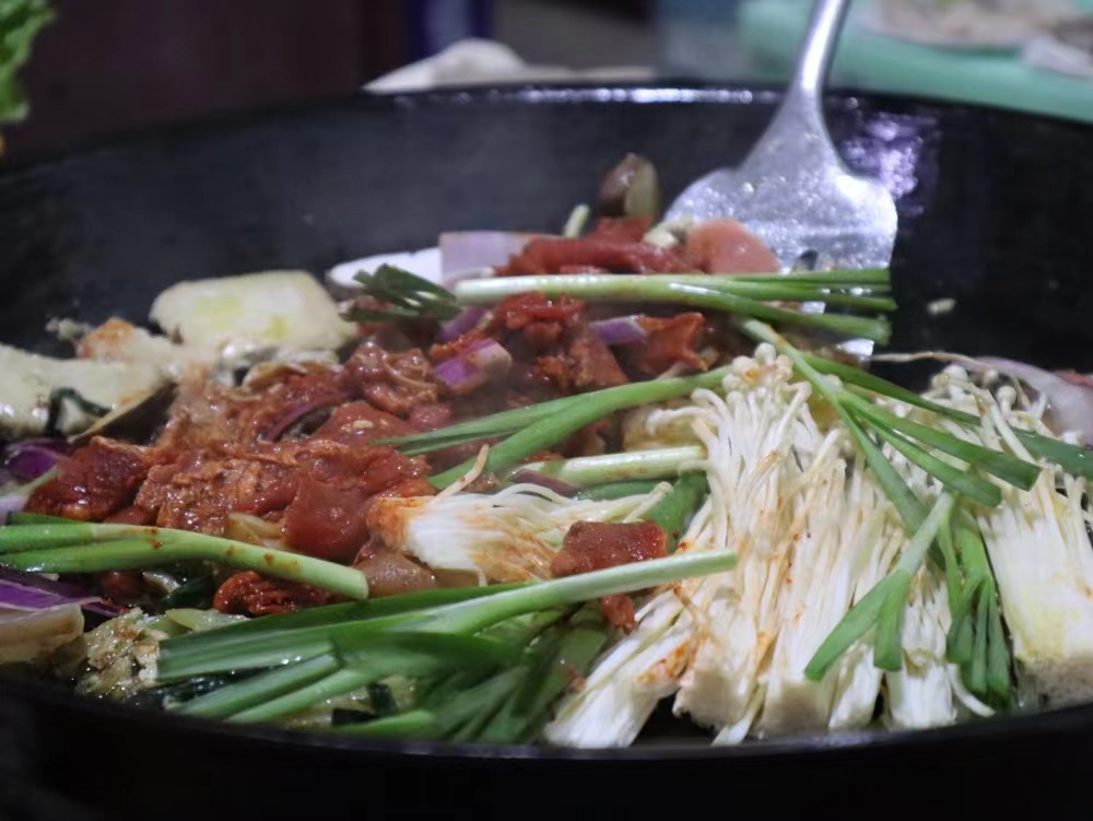 团队更是在有幸在学习中品尝感悟,贵州的羊肉粉选取当地的羊,味道鲜美,羊汤则是长时间熬煮,味道醇厚,再加上弹牙的米粉和羊肉片,一碗经过辣椒点缀后的羊肉粉吃出了满足与幸福。贵州的菜肴中,常见的配料包括酸笋、豆腐干、黄豆芽等,这些都赋予了贵州菜独特的口感和风味。