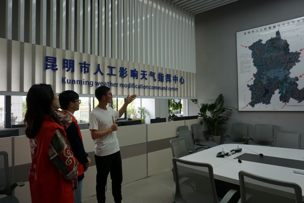 昆明市气象台台长带领小分队参观了气象台的工作内容并,为小分队讲解了昆明气象局所使用的雷达及其作用、波段等。同时,工作人员给团队讲解了人工调控天气的方法和部署、雷达站所使用的雷达和其重要性,并带团队参观了气象观测站。团队对工作人员进行了采访,记录内容如下。