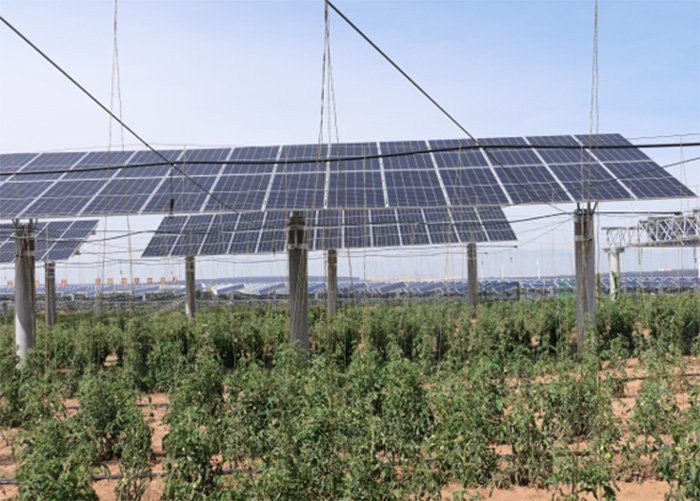亿利集团在库布其构建了板上双层发电、板下双层生态、板间双层养殖的“三双”立体生态光伏治沙模式。光伏发电与农牧业结合,既可以获得投资回报,又可以修复治理沙漠,保障黄河上游生态安全以及京津冀地区的生态安全。