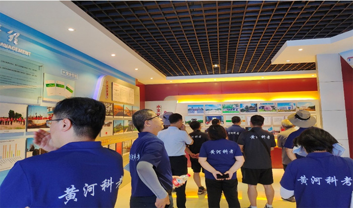 科考队员先后参观了毛泽东主席视察人民胜利渠纪念馆、人民胜利渠展览馆,深入了解了人民胜利渠的建设历程和黄河治理情况,重温了党领导人民克难攻坚、引黄治黄的奋斗历程。在毛主席视察人民胜利渠纪念馆两侧,“水利是农业的命脉”“要把黄河的事情办好”这两句话十分醒目,这也成为了水利和治黄工作者的座右铭。