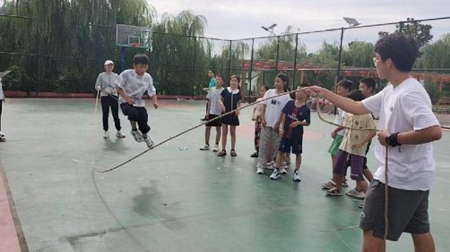 下午,由于支教生活渐渐接近尾声,老师们决定带着大家一起到广场上举办一次趣味运动会。运动会所需要的所有物品都是老师们前一天晚上提前准备好的。这一天老天爷似乎也特别关照我们。凉风习习,似乎将往日的炎热一扫而光。同学们这边早早的分成了两组,等待着老师的号令。
