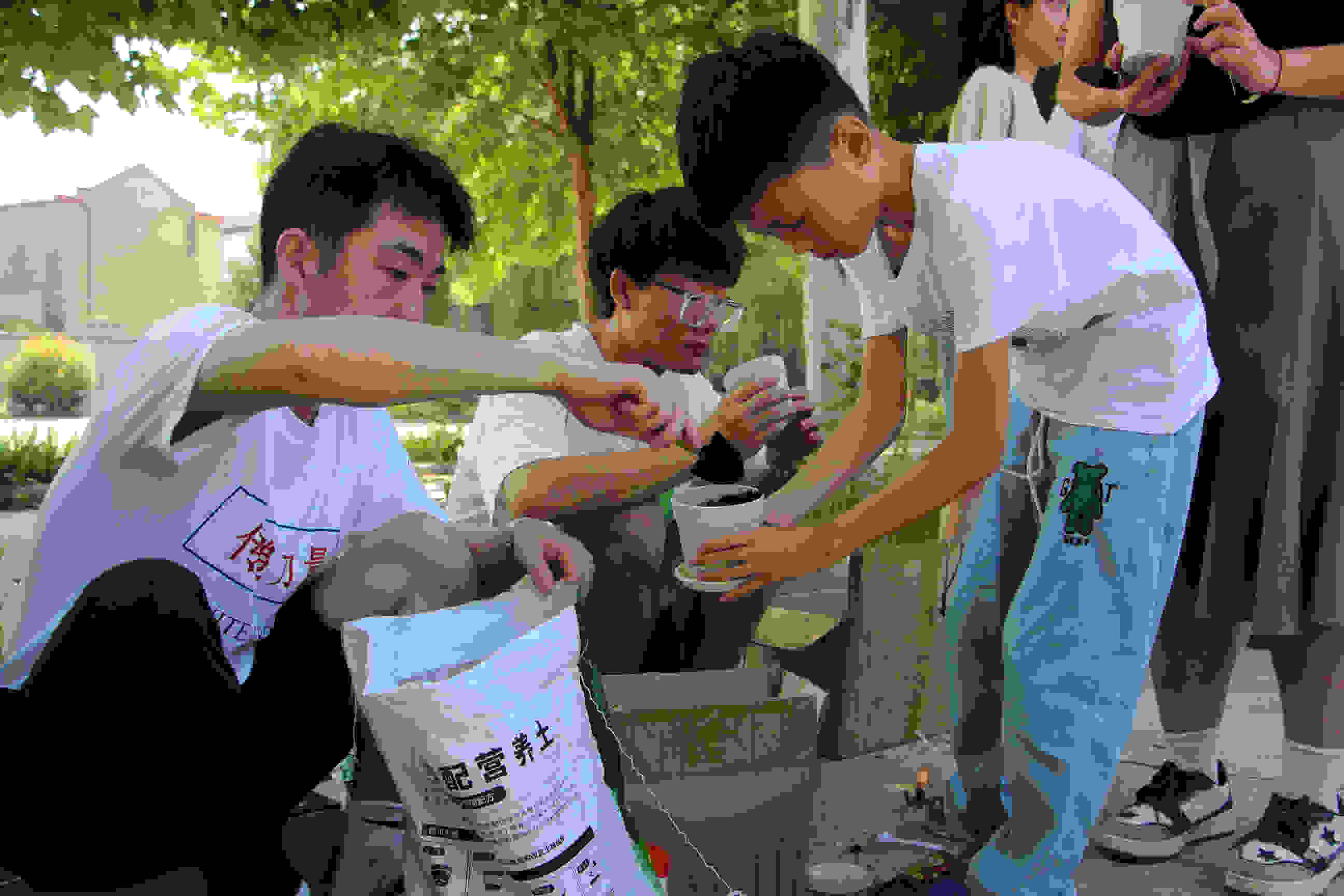 除教室内的学习以外,志愿者不忘带领孩子们来到室外放松身心,呼吸新鲜空气。志愿者为孩子们布置冒险故事中“只有种下魔豆才能获得紫水晶”的任务,带孩子们种下种子。在分发土壤、播种覆土等过程中,志愿者为孩子们科普种子发芽生长的知识,带孩子们了解生命的历程,使小朋友们在种植过程中感受劳动实践的乐趣。