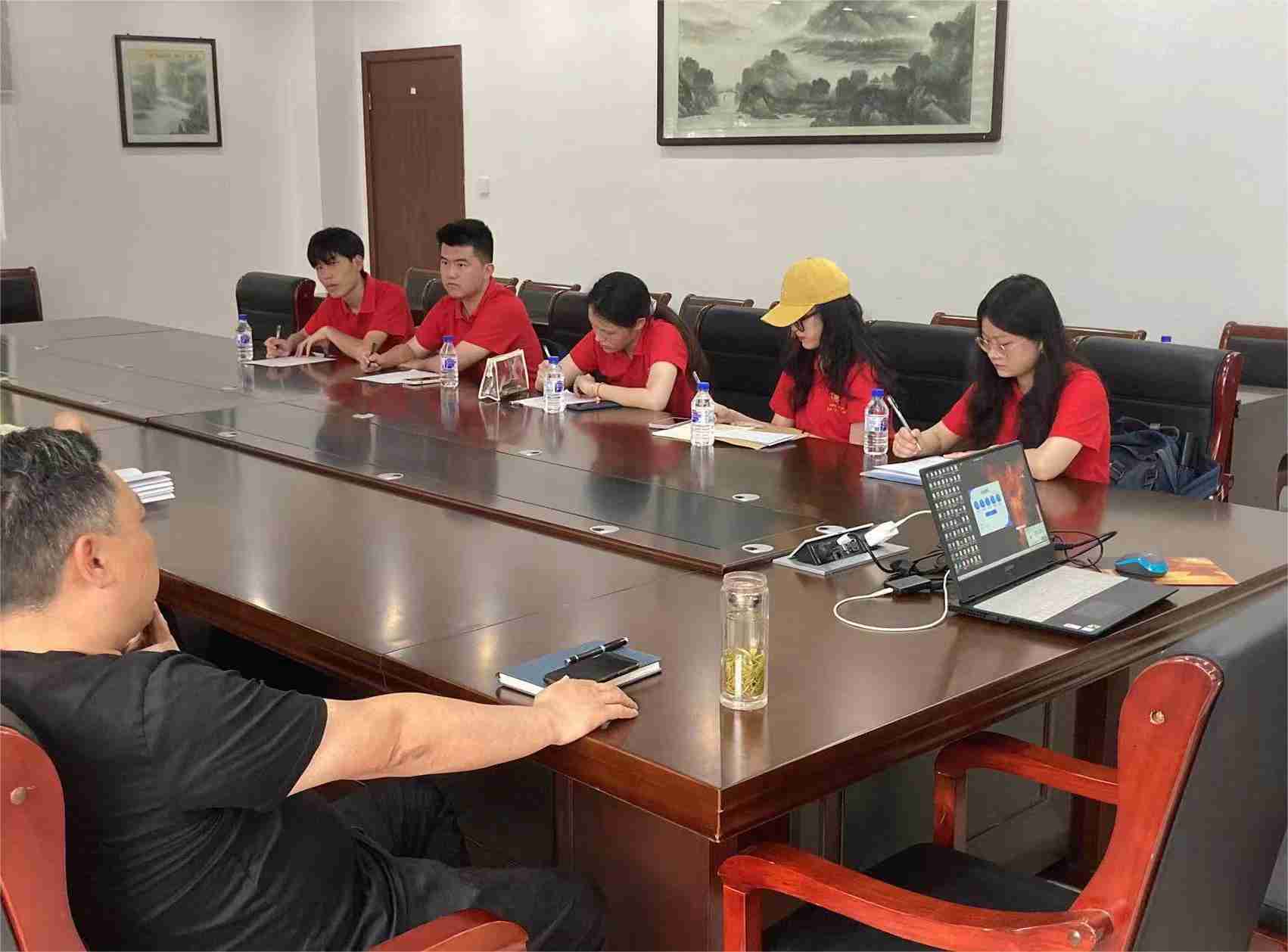 图3 实践团成员与水务局工作人员共同观看节水宣传片