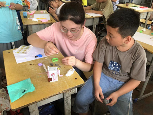 暑期社会实践支教活动。队员们走进留守儿童校园课堂,用爱心筑起留守儿童健康成长的阶梯。为提升学生们的兴趣爱好和审美情趣,开设了绘画、手工等文娱课程。此外也涉及了一些安全教育、心理课以及红色故事党史课,旨在开拓孩子们的视野,增强孩子们各方面的意识。
