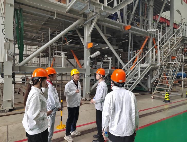 在工作人员的指引下,实践团成员穿戴好安全护具后动身前往实践地。在前往途中,实践团成员从工作人员郭师傅口中得知,森松重工有限公司是一家知名的重工业公司,主要从事建筑机械和工程机械的研发、制造和销售业务。作为一家重工业公司,森松重工积极关注可持续发展和环境保护,致力于污水净化以减少对环境的影响,并推动绿色制造和可再生能源的应用。