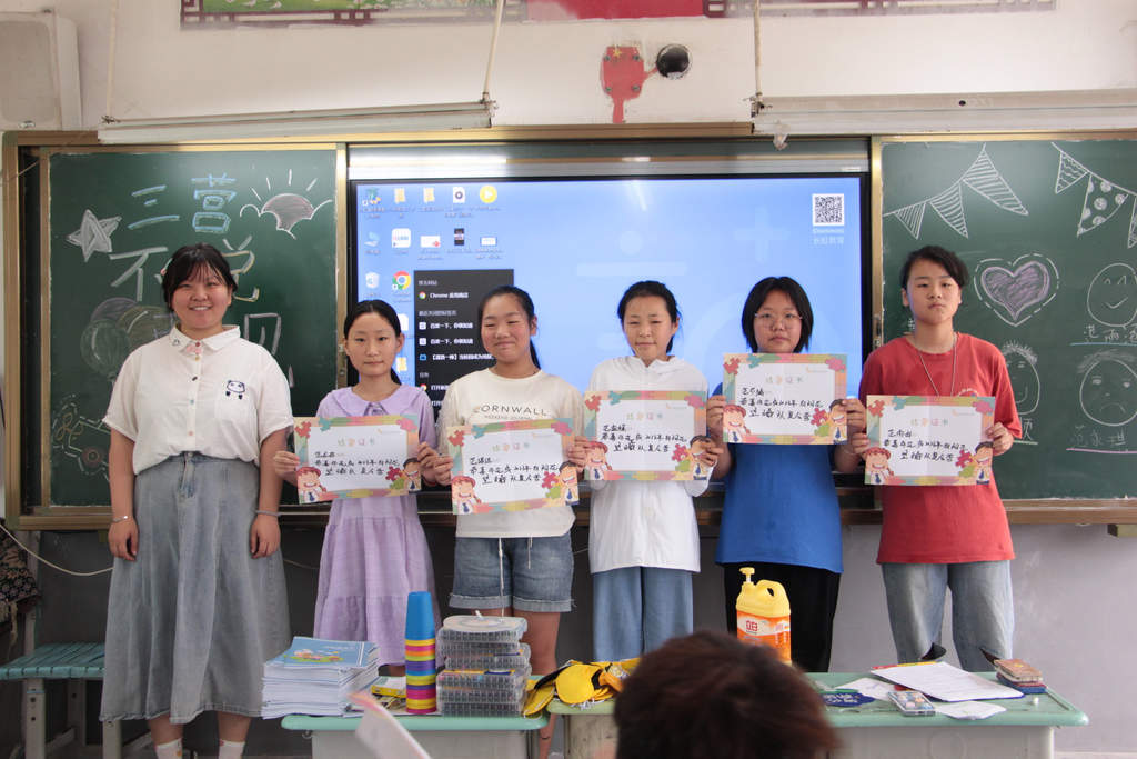 闭营仪式于三个营内部分别举行。为帮助孩子们总结收获与成长,志愿者带领孩子们回顾十天夏令营的课程,将亲手书写的信件交付孩子们,并鼓励孩子们写下心愿与感悟。为缓解离别的伤感气氛,志愿者与孩子们纷纷献上自己的才艺表演,使夏令营生活中留下一段美好的回忆。最后,志愿者为孩子们颁发奖状与奖品并合影留念,为此次夏令营之旅画上圆满的句号。闭营仪式结束后,一位志愿者看着孩子们离去的背影说:“虽然很不舍得这些可爱的孩子们,但天下无不散之筵席,希望他们能够努力长大,飞到更远的地方。”