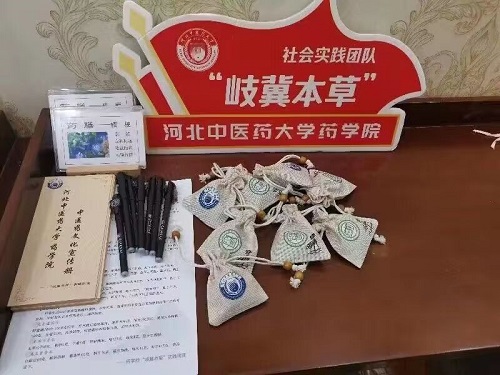 (图为实践团成员制作并发放中药香囊及中医药知识宣传册)