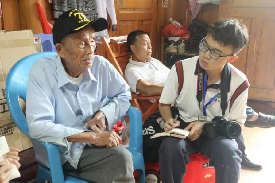 图为团队队员在访问93岁高龄的抗美援朝老兵梁培光爷爷。吴显维 摄