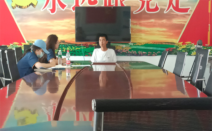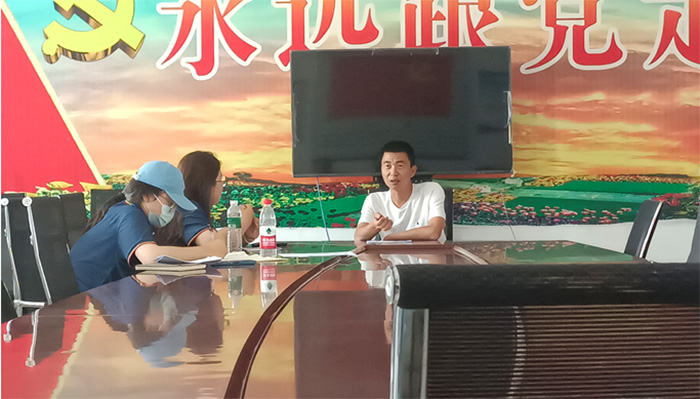 “寻访胡杨人物,传承胡杨精神”小队队长时梦雨和队员傅钰洁正在采访党员奚洁