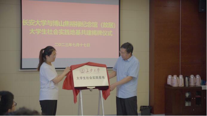 图为长安大学赴山东淄博“探数字赋能,助乡村振兴”暑期社会实践队与焦裕禄纪念馆社会实践共建授牌仪式