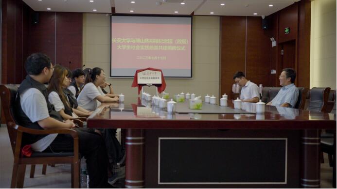 焦裕禄纪念馆主要负责人焦玉星和实践队进行座谈并举行长安大学与纪念馆(故居)大学生社会实践基地共建授牌仪式。在座谈会中,焦玉星表达了对实践队的热烈欢迎,他为实践团队成员讲述了焦裕禄的先进事迹及焦裕禄精神的内涵,他希望实践队员们能够认真学习焦裕禄精神,求真务实、开拓进取,实践队员们备受鼓舞。随后,在实践队员与纪念馆工作人员的见证下,焦玉星与实践队指导老师刘嘉文进行授牌仪式。