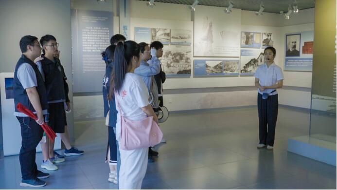 图为长安大学赴山东淄博“探数字赋能,助乡村振兴”暑期社会实践队倾听讲解员的讲解