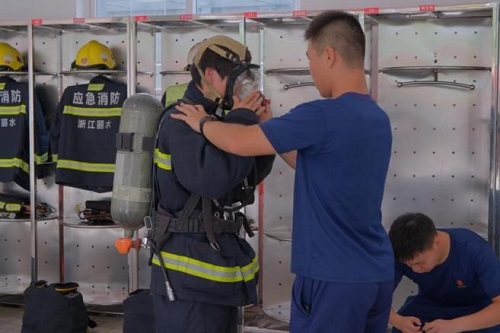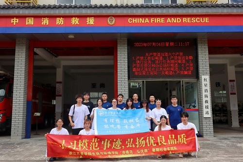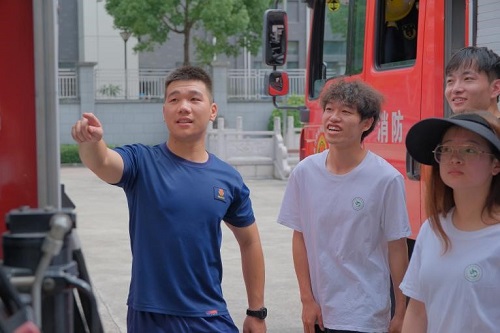 7月4日上午,“寻模范,弘优质”暑期社会实践队前往景宁畲族自治县红星街道消防救援中心,参观消防员训练生活的环境,并采访了消防战士。