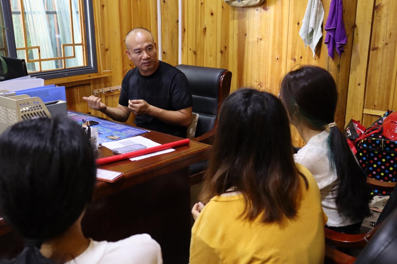 图为三都县凤羽公司工作人员和实践团队就马尾绣的销售渠道交流 文英灿摄