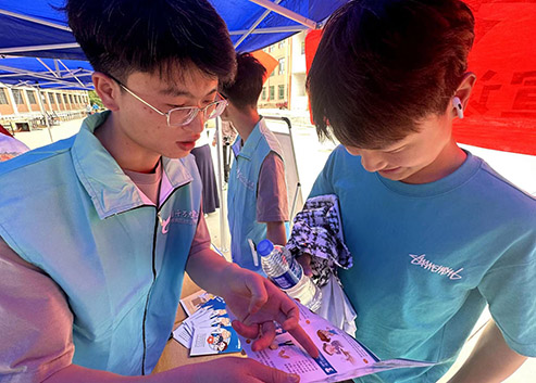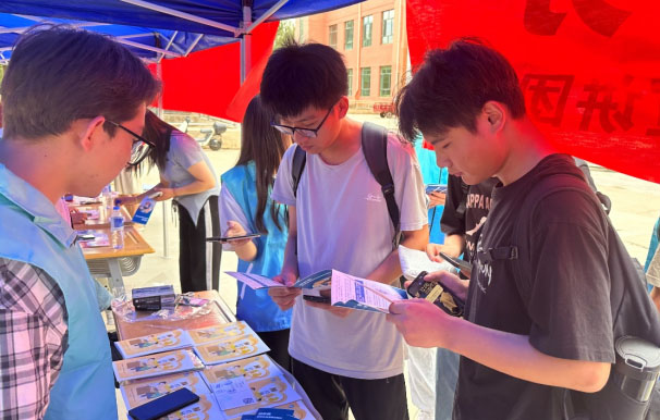 图为“防治结核红柳学子在路上”宣讲团队员为同学们进行明信片盖章并进行扫码答题