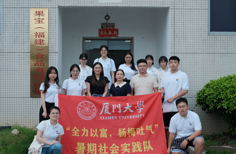 7月16日,厦门大学“全力以富,杨梅吐气”暑期社会实践队走进果宝(福建)食品有限公司(以下简称“果宝公司”)展开调研考察。公司代表对实践队一行的到来表示热烈欢迎,通过长桌交流,实践队了解了当下果宝公司推出的杨梅系列产品、生产流程、主要客户群体种类及销售渠道等内容。