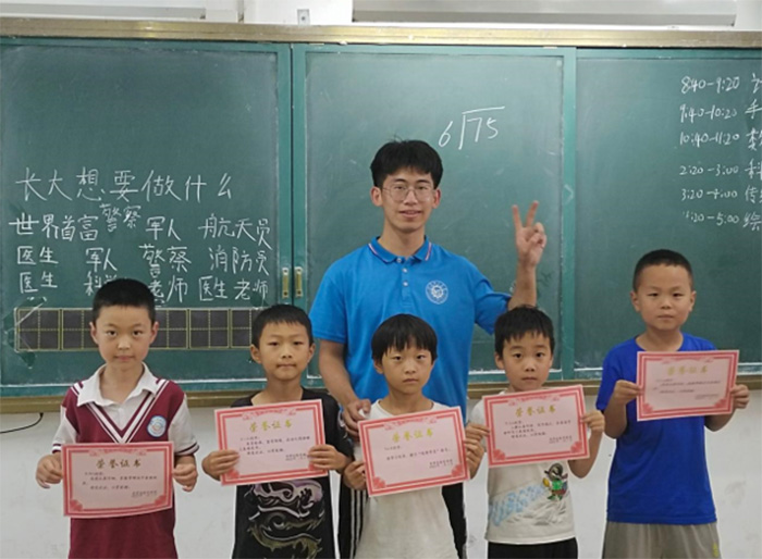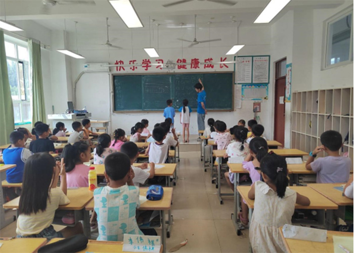 图为讲课的志愿者通过提问来查看学生对知识点的熟练程度。高鹏 摄
