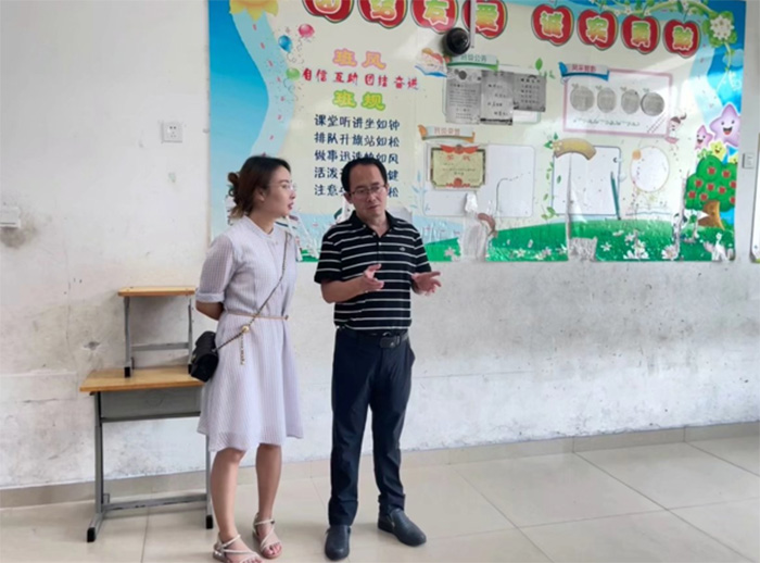 在这一天的行程中,马克思主义学院的院长和领导们还参观了初一初二班的国防强军思政课,四五年级的语文课,二三年级的数学课,巡查了各班的教学设计情况,并与学生们进行了互动和交流。通过这次实地考察,他们不仅对教学工作有了更深入的了解,还为学生们以及“筑梦启航”实践团的成员们提供了宝贵的学习机会和指导。