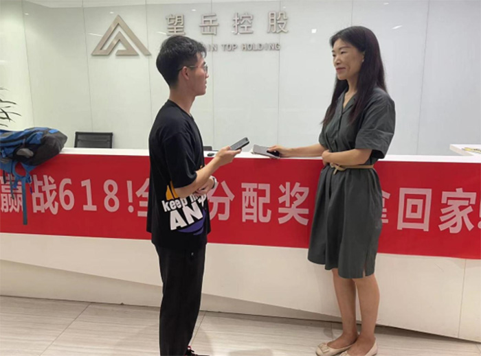 图为志愿者对南京汇恒商贸有限公司高管进行采访 通讯员 殷文奇 摄