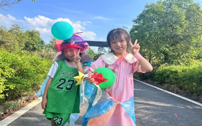 在搜集到一定数量时,志愿者先是用绘画课的方式去认识大自然,紧接着用这些废弃材料与孩子们一起去碰撞出属于这个夏日的“时尚show”。在志愿者们的帮助之下,孩子们挥洒着自己的创作才华,在一件件本朴实无华的材料中穿梭、裁剪、拼接、制作服装。当红毯铺展,音乐响起,小小的他们迈着小小的步伐,此时此刻,环保的意识已经悄然在他们的心灵深处扎根。团队设计的主题课程传递着爱护家乡的核心价值观,也为孩子们传递了正确的环保观念。