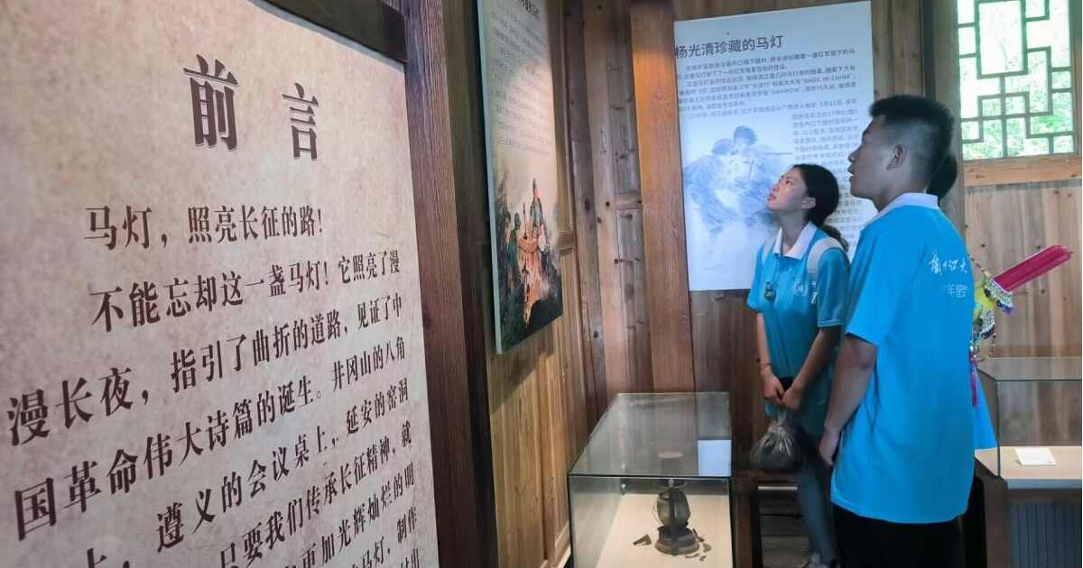图为兰州理工大学“一黔路行”实践队队员瞻仰革命马灯。王芙蓉(供图)
