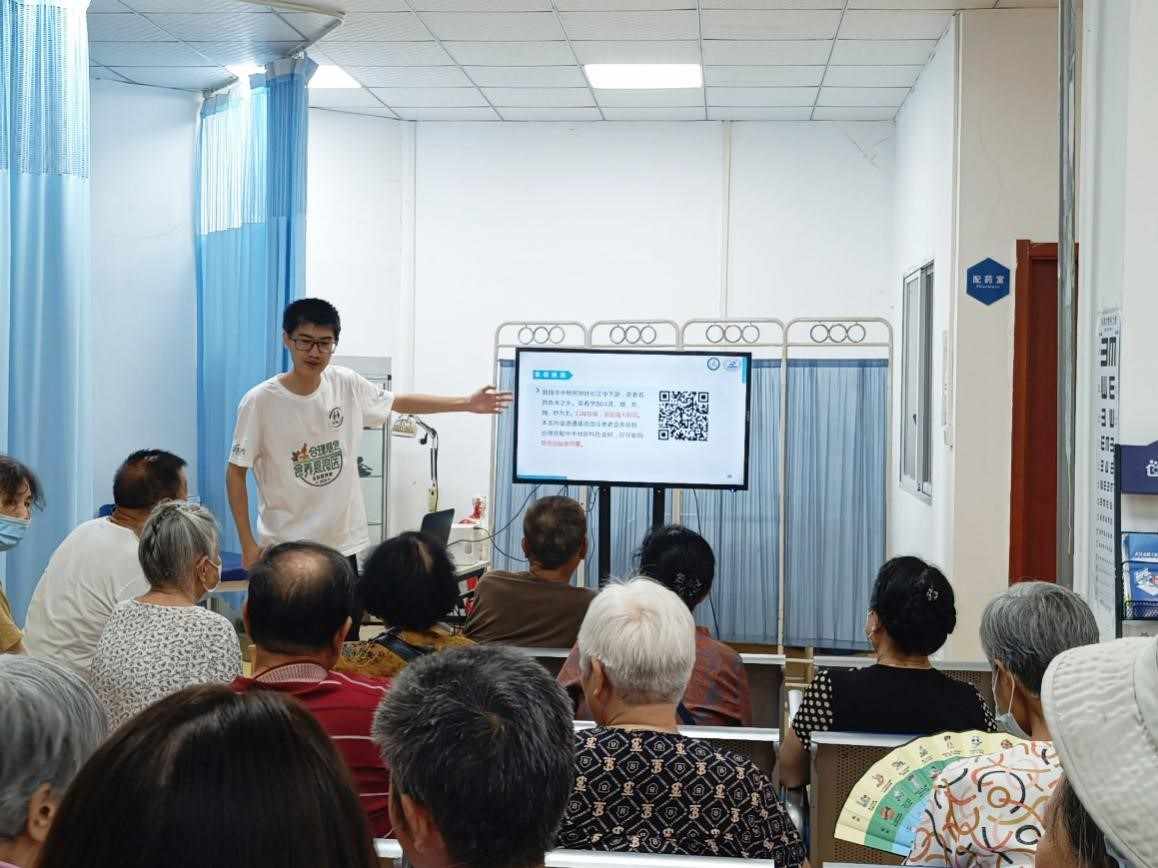 李源涛同学则介绍高血压的预防和干预措施,根据高血压食养指南和中国居民膳食指南,向老年居民们介绍各类食物的推荐摄入量。在宣讲过程中,老年居民们积极参与,现场还为老年居民们提供测血糖、血压的服务,让他们感受到社区医疗服务的温暖关怀。