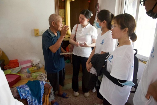 图为队员向棋牌室老人调研生活满意度和幸福度