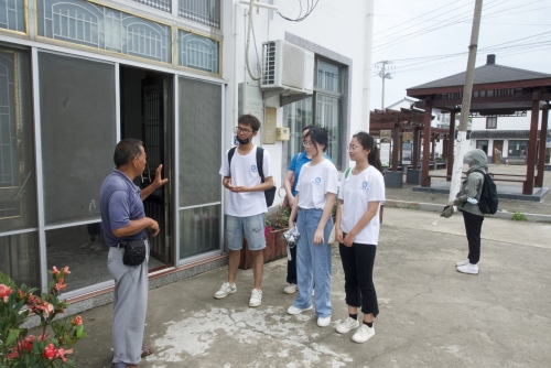 图为实践队对望亭镇迎湖村村民进行走访调研