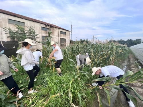 图为队员在玉米地实干劳作