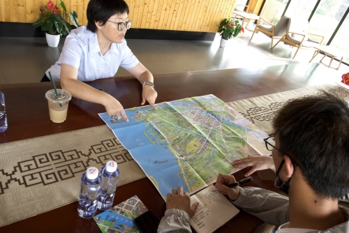 林经理向实践队长介绍北太湖旅游度假区建设、农文旅融合发展情况