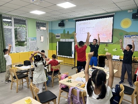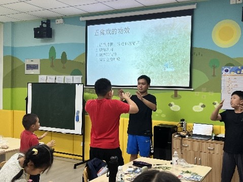 在本次活动的最后,队长带领小朋友们感受了中医传统养生运动——五禽戏。小朋友们跟随队长的动作,模仿着虎鹿熊猿鸟五种动物的姿态,憨态可掬地体验了五禽戏。