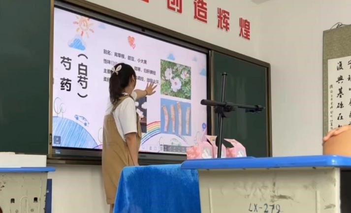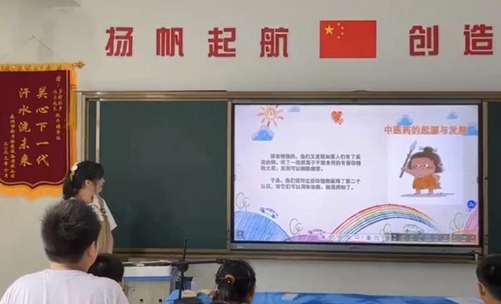 课堂上,队员们以动画形式讲述了“神农尝百草”的神话故事,让同学们更深刻地意识到中医药是在前人的反复实践下才积累得出的珍贵宝藏。