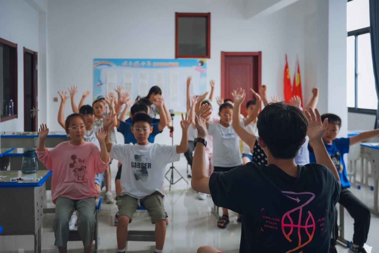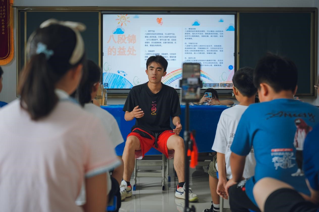 队员们为小朋友们介绍了八段锦悠久的历史和能够柔筋健骨、养气壮力的功效,随后讲解了八段锦的动作和口诀,强调要调整呼吸、气沉丹田、静心凝神,在队员们专业的讲解与教授下,每一个动作大家都学得有模有样。