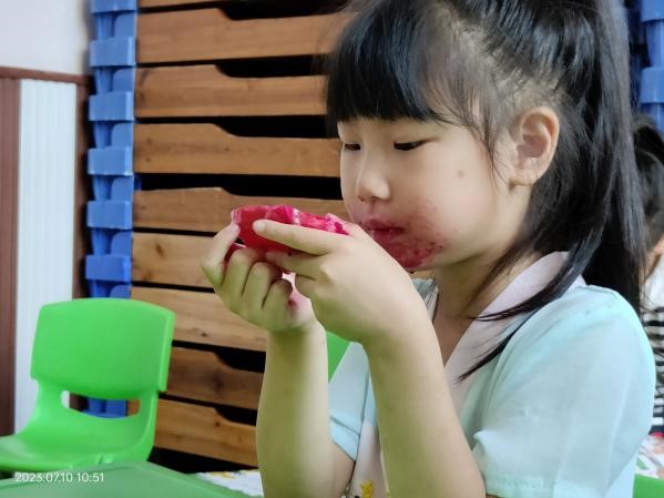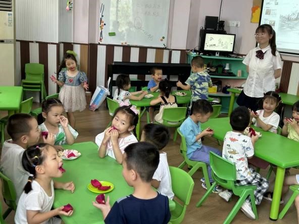 图为小朋友们吃火龙果