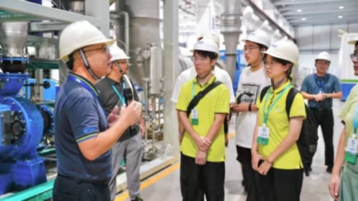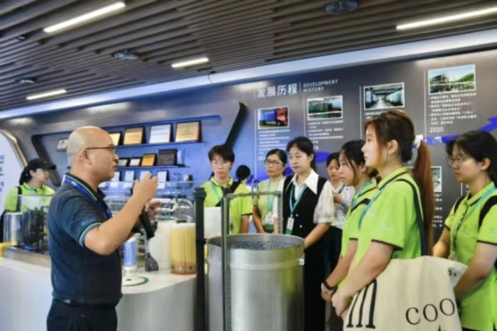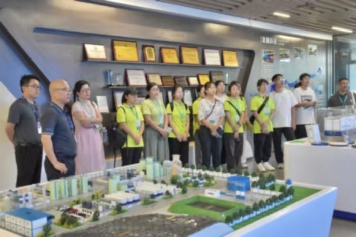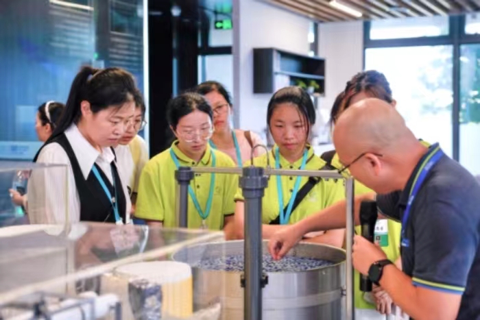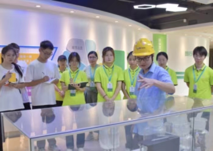 了解完精品案例,实践队队员深入车间参观了成果展厅、化学实验室、中试基地及集装箱式渗滤液处理设备等。产品工程师为实践队队员讲述发展基础材料和核心技术的意义,只有将基础材料和核心技术同时掌握在自己手中,才能牢牢掌握创新主动权和发展主动权。